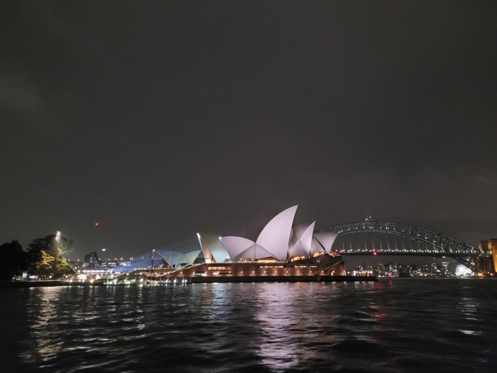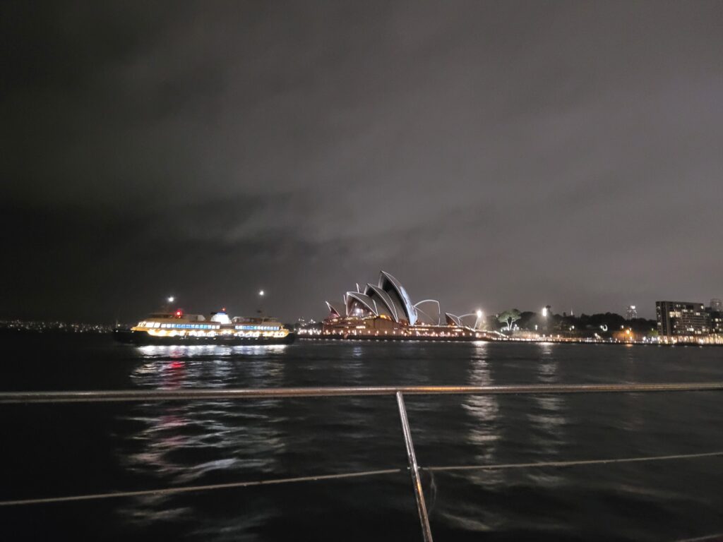 Verder stond er nog één introfeestje op de planning, dat was geregeld door een ouderejaarsstudent, Evan, zelf. Van ongeveer 6 uur ’s avonds, toen het net donker werd en flink regende, voeren we op een overdekte boot drie uur lang door de haven van Sydney met prachtig uitzicht op de Sydney Opera House. Dit bood mooi de gelegenheid studenten te ontmoeten, want er kwamen zo een negentig studenten van allerlei nationaliteiten op af. Na het onbeperkte bier achter de kiezen te hebben, was het tijd om naar buiten te gaan en te lopen richting de Ivy, een grote nachtclub. Ondanks de stromende regen was het uitzicht tijdens de boottocht zeker de moeite waard.