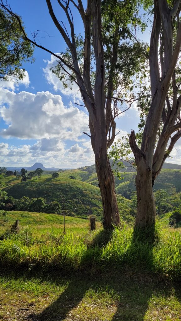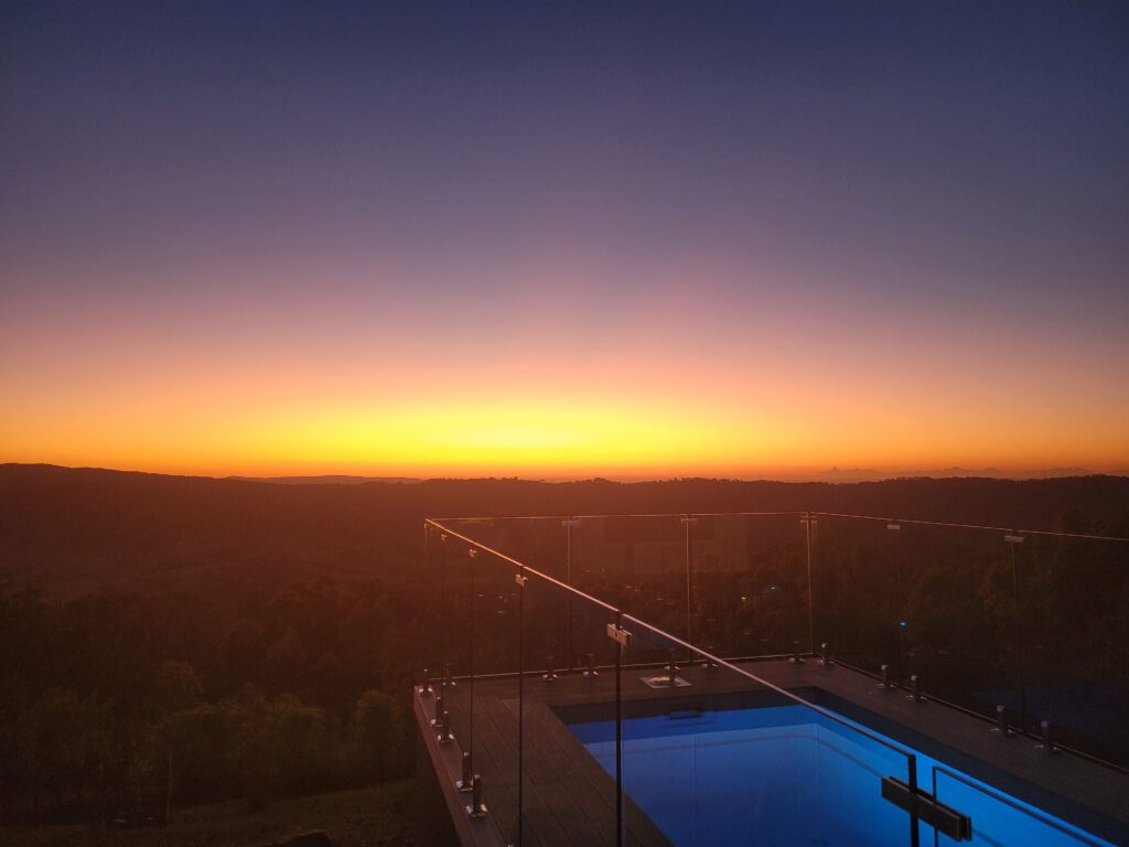 Bij de tweede en derde proeverijen heb ik geen foto’s meer gemaakt en was ik iets verzonken in mijn wijnervaring. Uiteraard heb ik ook enkele wijnen gekocht. Nadat de wijntoer was afgelopen – en wij nog aardig wat moesten rijden naar de Airbnb – kregen wij gelukkig een lift aangeboden van de toergids en kwamen wij veilig aan. Het bevond zich heel afgelegen in de bush en onderweg zag ik dan eindelijk mijn eerste kangoeroes en wallaby’s. De lange rit was het zeker waard, omdat we aankwamen bij een onlangs gebouwde chique hut met dit uitzicht. Na heerlijk te hebben gegeten en een van de wijnen op te hebben kwam de dag ten einde. Op dinsdag werden we wakker voor het mooie uitzicht dat hieronder te vinden is. Die middag reden we naar de Hunter Valley Gardens en aten we nog wat in de omgeving. Op de paar foto’s hieronder is alles van de dagen te zien.