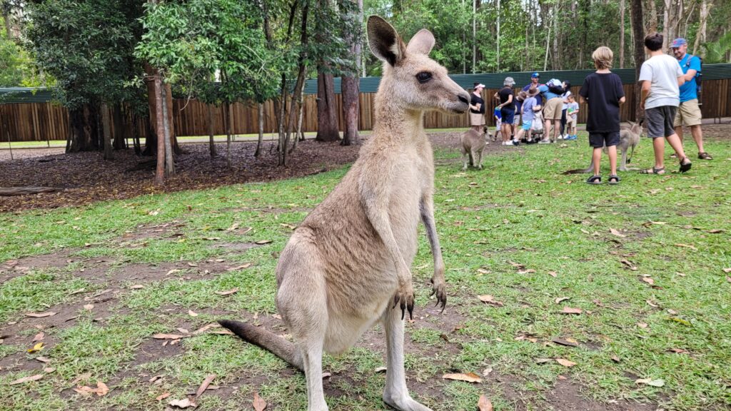 Toen we wegreden van onze cabin realiseerde ik me dat ik mijn paspoort niet meer had. Vervelend natuurlijk en ik was bang dat het een probleem zou worden tijdens onze terugvlucht van Mackay Airport naar Sydney. Gelukkig bleek deze te liggen in de vorige woning en de host stuurde mijn paspoort naar Sydney. (Ik had voor de terugvlucht uiteindelijk genoeg aan mijn ID-kaart gezien het een binnenlandse vlucht is.) Maar wel of geen paspoort, we reden verder naar onze volgende, tropische bestemming: Cootharaba. Dit was een plaatsje twee uur boven Brisbane en in een tropische omgeving. We hadden hier vier nachten en tijdens de tweede volle dag, op Eerste Kerstdag, landde Sander op Brisbane Airport. Het was uiteraard ook heel prettig om hem na een kleine vier maanden weer te zien! We ontbeten dan ook op Tweede Kerstdag weer fijn gezamenlijk. In de omgeving waren ook de Noosa Everglades. Australië claimt dat het een van de twee everglades ter wereld is; Amerika stelt dat er maar één zo een gebied is, in Florida. Hoe dan ook zijn we natuurlijk gaan kijken bij de Everglades met zijn allen en het was een mooie omgeving. De dag erop gingen wij naar de bekendste dierentuin van Australië en dat is natuurlijk die van de familie van Steve Irwin, de Australia Zoo. Wie hem niet (meer) kent, hier een filmpje. Het was de mooiste dierentuin die ik heb bezocht en het bood een leuke manier om de kangoeroes en wallaby’s van dichtbij te zien. Ook zag ik de koala’s voor het eerst en kon je daar heel dichtbij komen. Verder waren er natuurlijk aardig wat krokodillen, slangen en wombats.