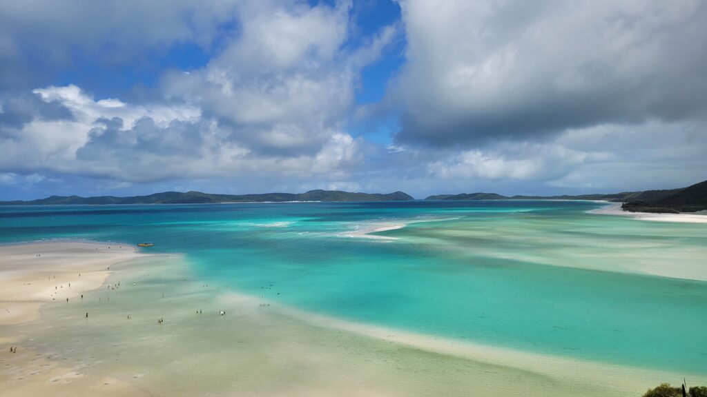 Vanaf ons verblijf in Cootharaba reden we door naar het noorden, met een tussenstop in Rockhampton van één nacht. Daarna reden we door naar Cannonvale, net boven Airlie Beach in de tropen. Hier was het een aangename 32 graden met veel zon. De rit erheen bracht ons al langs de prachtige stranden. We verbleven bij het gebied genaamd ‘The Whitsundays’. Hier is op sommige delen het witste zand ter wereld. Op oudejaarsdag hadden we een boottocht gepland staan, die helaas de dag van tevoren werd afgezegd door het bedrijf. Gelukkig was er nog plek bij een andere toerboot. Op oudejaarsdag was het lekker warm, echter, het was ook flink aan het regenen. De drie heel vriendelijke toergidsen verwachtten dat als we de baai verlieten het wel eens zonnig zou kunnen zijn. Uiteindelijk bleken zij gelijk te hebben en hadden we prachtig weer: zon, wat wolkjes en 30+ graden. De bootreis naar de bestemmingen was al heel mooi op zich. Ook hadden we een lekkere barbecue bij Whitehaven Beach waar een varaan rondliep. Toch weer wat wildlife gezien. Op het strand konden we natuurlijk ontspannen, maar zodra we de zee in wilden, moesten we een stinger suit aan vanwege de Box Jellyfish. Deze dodelijke kwal dobbert er namelijk rond. Daarna vertrokken we (volgens de toergidsen althans) naar een van de meest gefotografeerde plekken van Australië. Hier hadden we prachtig uitzicht over de stranden, de zee en de eilanden. Daarvoor moesten we eerst een klein stukje wandelen, maar dit was het zeker waard. Na een dag lang varen, wandelen en zwemmen waren we vroeg moe terwijl het oudejaarsdag was. Ondanks deze afwijkende invulling was het een super oudejaarsdag.
