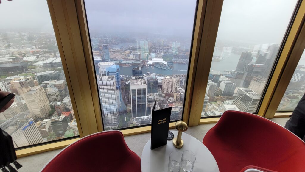 De dag erop vlogen we van Mackay Airport naar Sydney en daar bleven mijn ouders en broer leuk nog een week. Uiteraard lieten we Sander ook de Harbour Bridge en Opera House zien. Verder kon ik ook eindelijk mijn verjaardagscadeau aan mijn vader geven door met zijn vieren een drankje te doen in Bar 83, in de Sydney Tower. Deze is hieronder te zien en dit is de hoogste bar van Sydney op de 83e verdieping. De wijn, cocktails en mocktails, maar ook de hapjes waren heerlijk en het uitzicht was indrukwekkend.