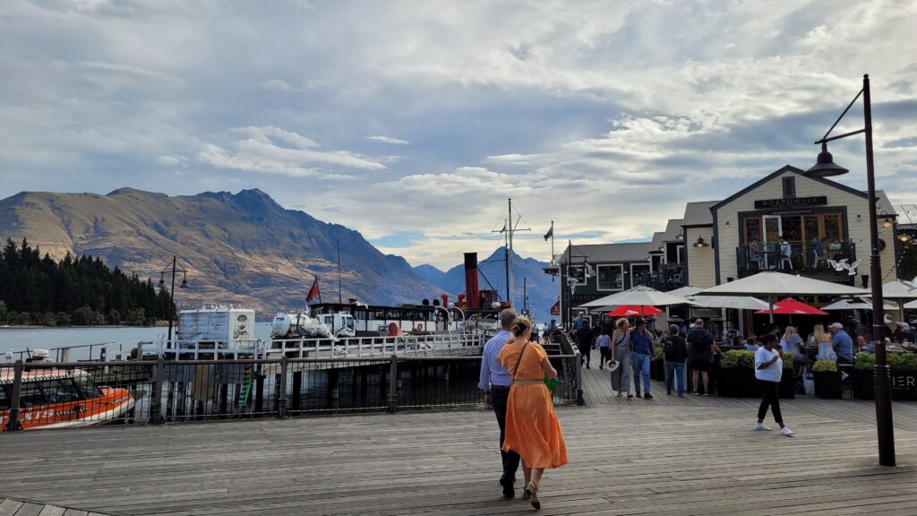 Op maandag vertrok ik naar Queenstown, een toeristische stad in de bergen waar een groot aanbod is wat betreft extreme sports. Ik stopte onderweg bij Wanaka, om wat tijd te doden in verband met mijn check-in tijd. Het was 32 graden en in het meer werd gezwommen met mooi uitzicht op de bergen erachter. Ik reed daarna door naar Queenstown en ’s avonds ging ik naar het voormalige goudstadje Arrowtown. Hier waren nog veel gebouwen bewaard gebleven uit de goudzoekerstijd en dus was er een mooi straatbeeld. Na wakker te zijn geworden de dag erop ontdekte ik Queenstown en boekte ik een skydive-vlucht. Dit was voor de dag later, woensdag, en ik ging die dag ook nog naar de stadjes in de omgeving waaronder Cromwell. Helaas werd mijn skydive tweemaal afgezegd vanwege het weer en moest ik de ervaring aan me voorbij laten gaan. Aanvankelijk wilde ik die dag verder naar het westen rijden, naar de Fox Glacier en Franz Josef Glacier, maar omdat ik al eerder gletsjers had gezien en niet elke nacht ergens anders wilde slapen besloot ik naar de stad Dunedin te gaan.