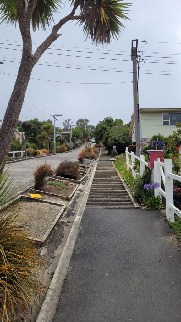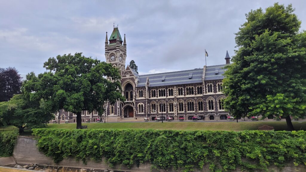 Die avond ging ik naar de meest steile, bewoonde straat ter wereld: Baldwin Street. Er vertrok net een toerbus met toeristen en ik had de rustige straat voor mezelf. Na een derde te hebben beklommen vonden mijn kuiten het wel best. Ik liep vervolgens naar het stadscentrum en de gebouwen waren verrassend mooi: veel oude gebouwen uit de Victorian era en kort daarna. Ik bezocht de University of Otage – een van de mooiste universiteiten die ik heb gezien.