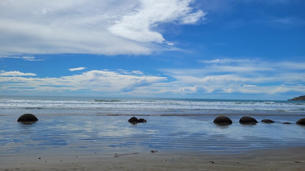 De dag erop reed ik terug naar Christchurch en moest ik mijn huurauto weer inleveren. Ik stopte op aanraden van mijn host uit Dunedin bij de Moeraki Boulders. Dit zijn grote keien die eigenaardig rond zijn. In Christchurch aangekomen leverde ik de auto de auto in met ruim 2100 extra kilometer op de teller. Ik besloot na al het rijden rustig aan te doen op die dag. Op mijn laatste dag, zaterdag, besloot ik de stad te bezichtigen.