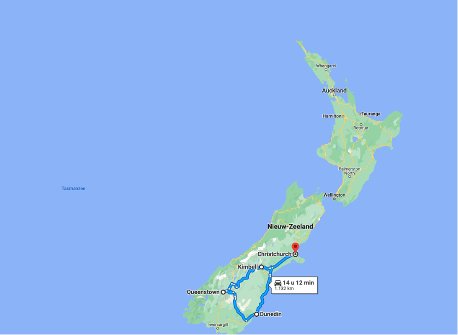 Daarna ging ik naar Nieuw-Zeeland voor een weekje. Alle groepstoeren waren al vol en wegens studies en verhuizingen kon helaas niemand mee. Ik besloot een kleine road trip door het zuidereiland te doen in mijn eentje en huurde een auto. Ik kwam ’s nachts aan in Christchurch, de grootste stad van het zuidelijke eiland, en moest helaas erg lang wachten. De logistiek was ontregeld door de overstromingen in de hoofdstad, Auckland, waardoor de wachttijd zich opstapelde bij Christchurch. De ochtend erop ging ik naar het vliegveld om mijn huurauto op te halen. ‘Helaas’ waren de kleine auto’s – waarvan ik er eentje gehuurd had online – niet meer beschikbaar. Of een grotere auto ook prima was. Uiteraard ging ik akkoord, ondanks dat ik nog nooit aan de linkerkant had gereden.